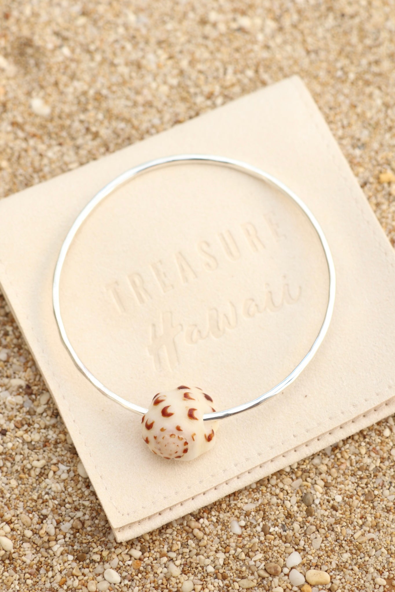 Each bangle is handcrafted from 12-gauge wire, shaped, hammered, and polished by hand for a smooth, durable finish. Every piece features a unique ocean-found shell collected on Oʻahu, with details and textures that vary from bangle to bangle.